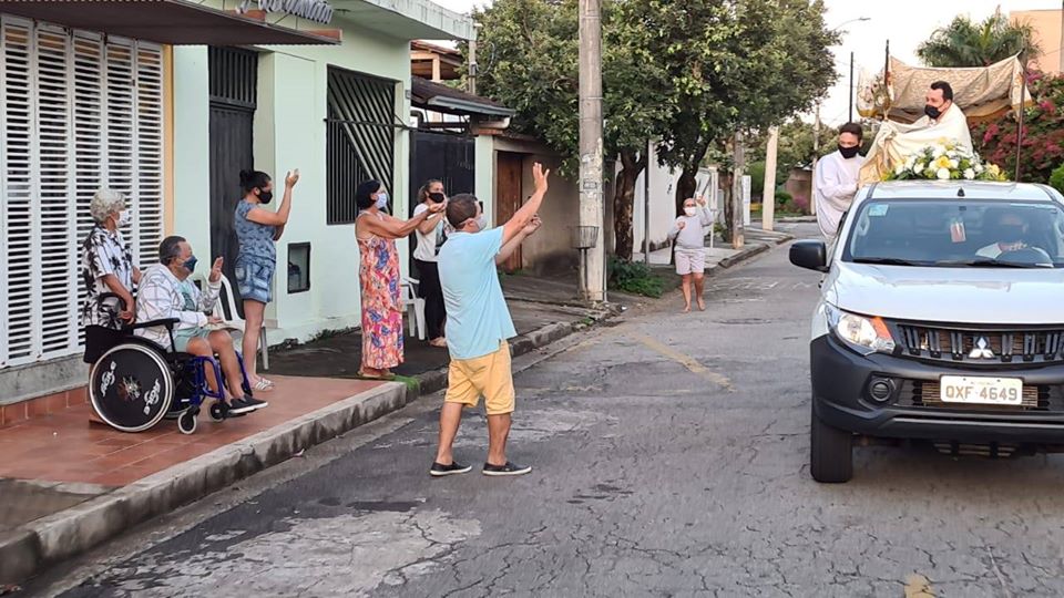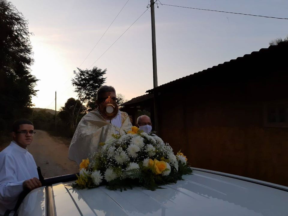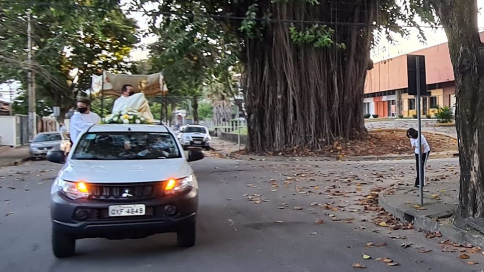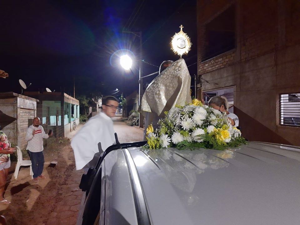 Com muito amor, às 15h nosso pároco Ronaldo Tôrre presidiu a Santa Missa que foi transmitida ao vivo às 15h pelo Facebook da Paróquia. Após a celebração, ele saiu em procissão em carro aberto com o Santíssimo por algumas ruas das comunidades da Paróquia, trajeto onde testemunhou-se diversas manifestações de amor a Jesus.
